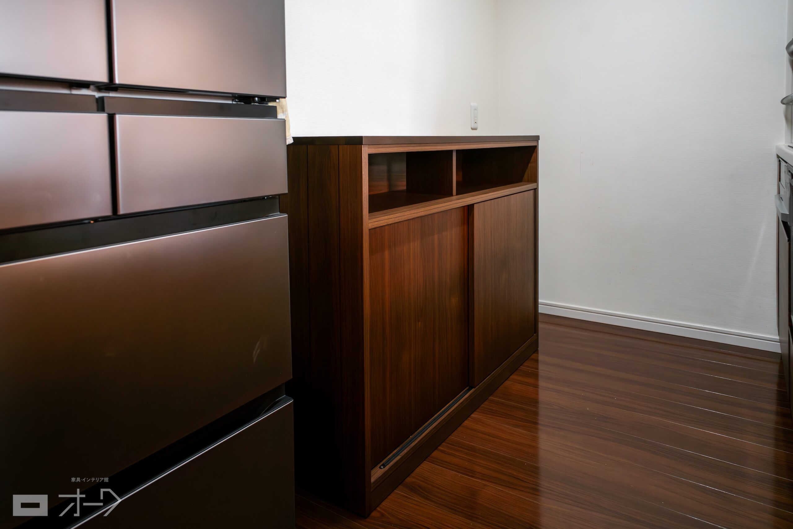 ブラックウォールナット無垢材のカウンターキャビネットをお届けしました。立ったままの姿勢で作業がしやすいように、天板の高さを900㎜ほどで製作しています。既製品では通常は作られることがないサイズ感で、収納力もアップしつつ、使い勝手の良い仕様に仕上がっています。