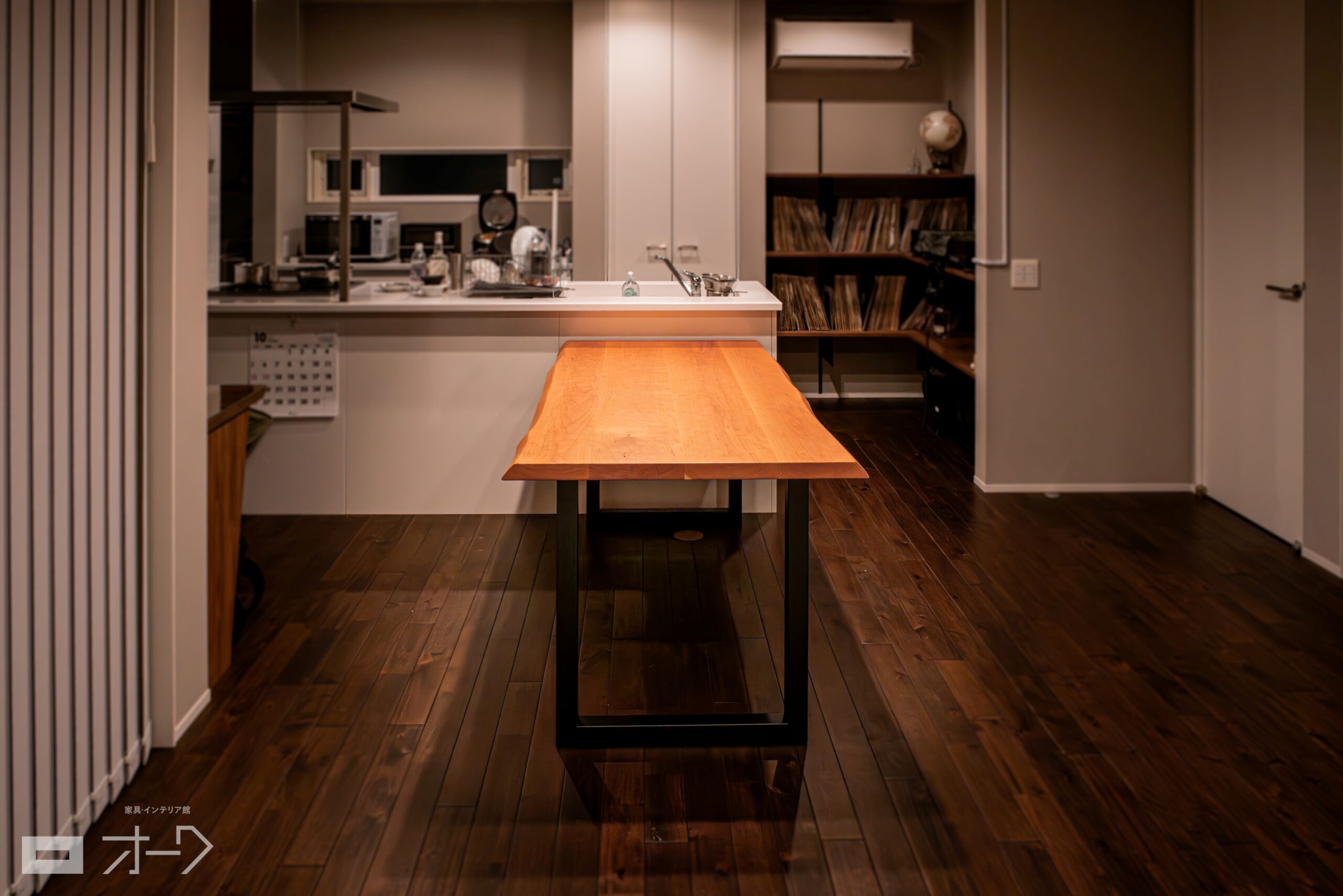ブラックチェリー無垢材のダイニングテーブルをお届けしました。ほのかにオレンジ色がかった、肌理の細かな木肌がとても綺麗です。経年変化でより一層味わい深い色合いになっていくのが楽しみな一品です。脚部は黒塗装のスチールを合わせて無骨な印象も加えて、天板の高級感とのコントラストが素敵な仕上がりになりました。