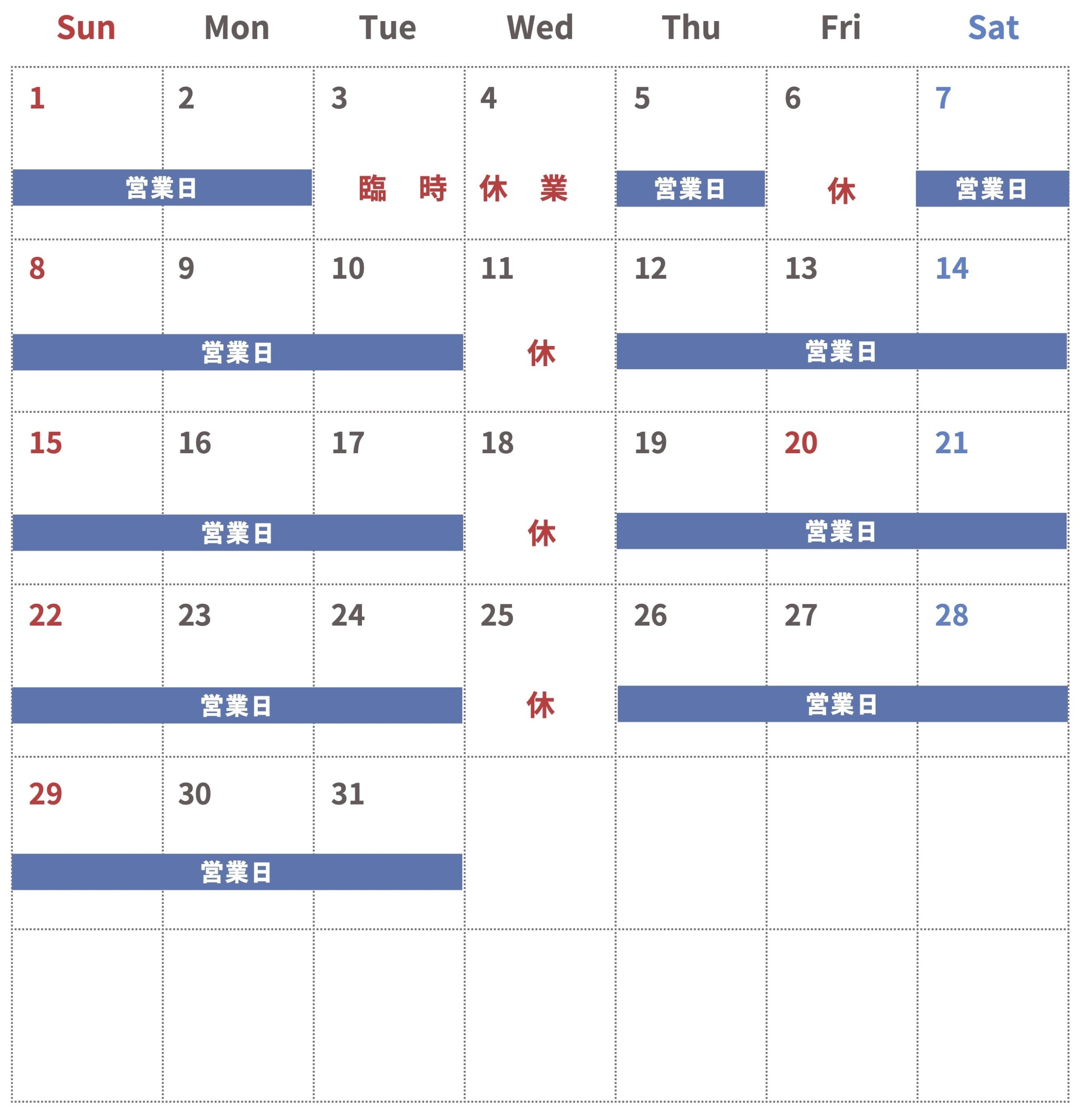 2026年3月中の営業日については下記の通りです。 (営業時間 – 12:00〜19:00)